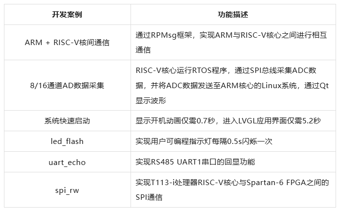 創(chuàng)龍科技提供了許多較為實(shí)用的RISC-V開發(fā)案例,并持續(xù)更新中。部分案例說明如下: