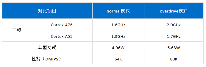 在高性能的場景下,可將CPU主頻調整為更高頻率,即overdrive模式,以獲得更高性能。
