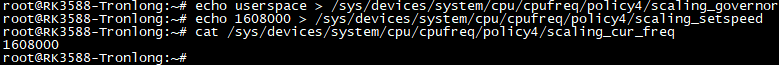 下圖演示將系統(tǒng)配置為userspace策略,并把CPU主頻設置為1.608GHz。