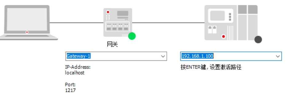 回到CODESYS的主界面,鼠標(biāo)雙擊"Device",在彈出來的Device界面,點(diǎn)擊“通信設(shè)置選項(xiàng)”。如下圖所示,在界面中設(shè)備的狀態(tài)標(biāo)識為黑色,表示未連接設(shè)備。在激活路徑輸入評估板IP地址192.168.1.100,并回車。