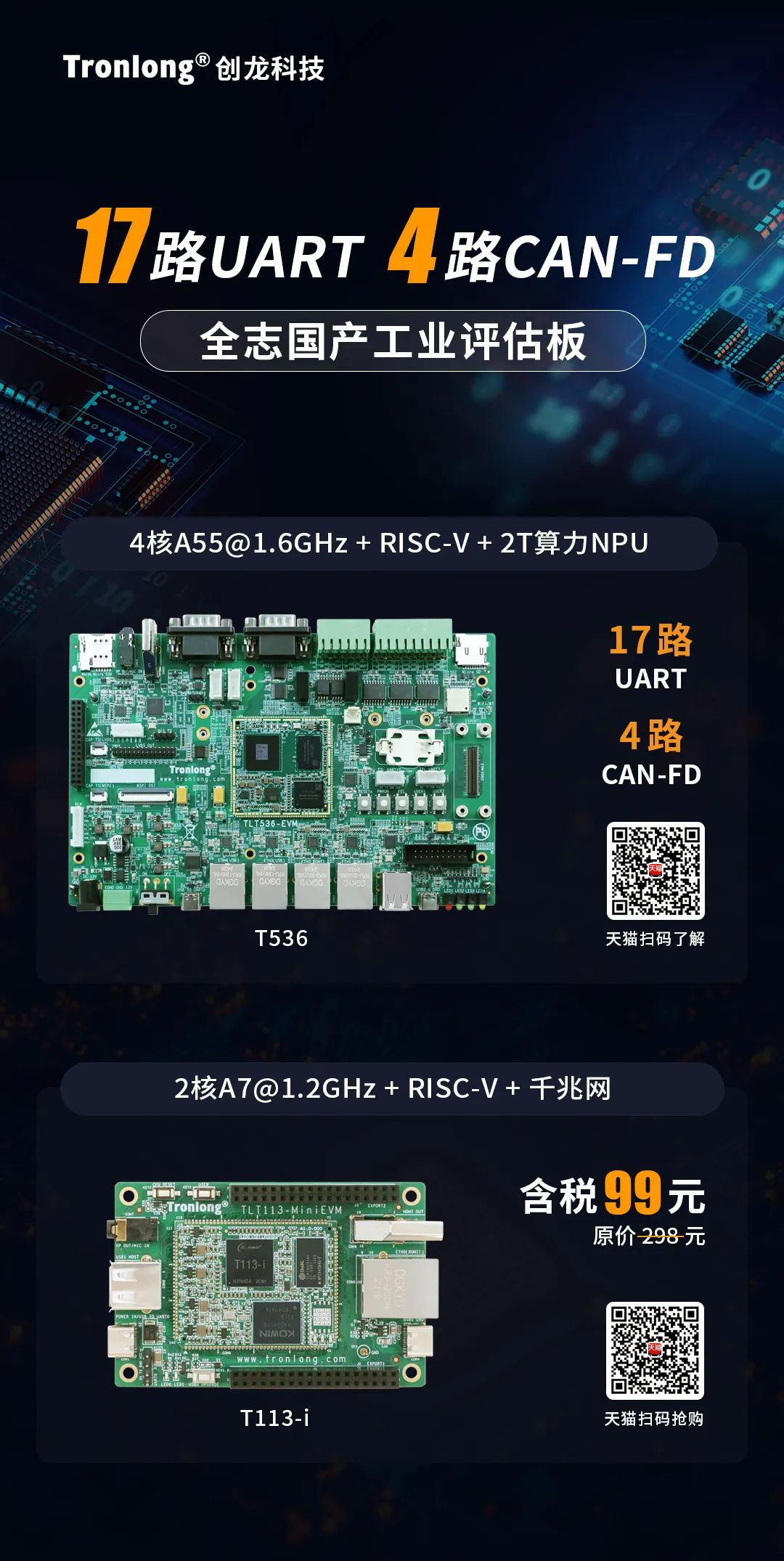 超值優(yōu)惠!創(chuàng)龍科技T113-i工業(yè)評估板限時優(yōu)惠價99元(原價298元,含核心板、底板、配件)!