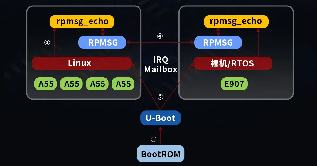 主核專注運行GUI界面、網(wǎng)絡(luò)通信等復(fù)雜應(yīng)用,從核則負責(zé)實時性要求更高的任務(wù),如傳感器數(shù)據(jù)采集、定時器中斷響應(yīng)等。
