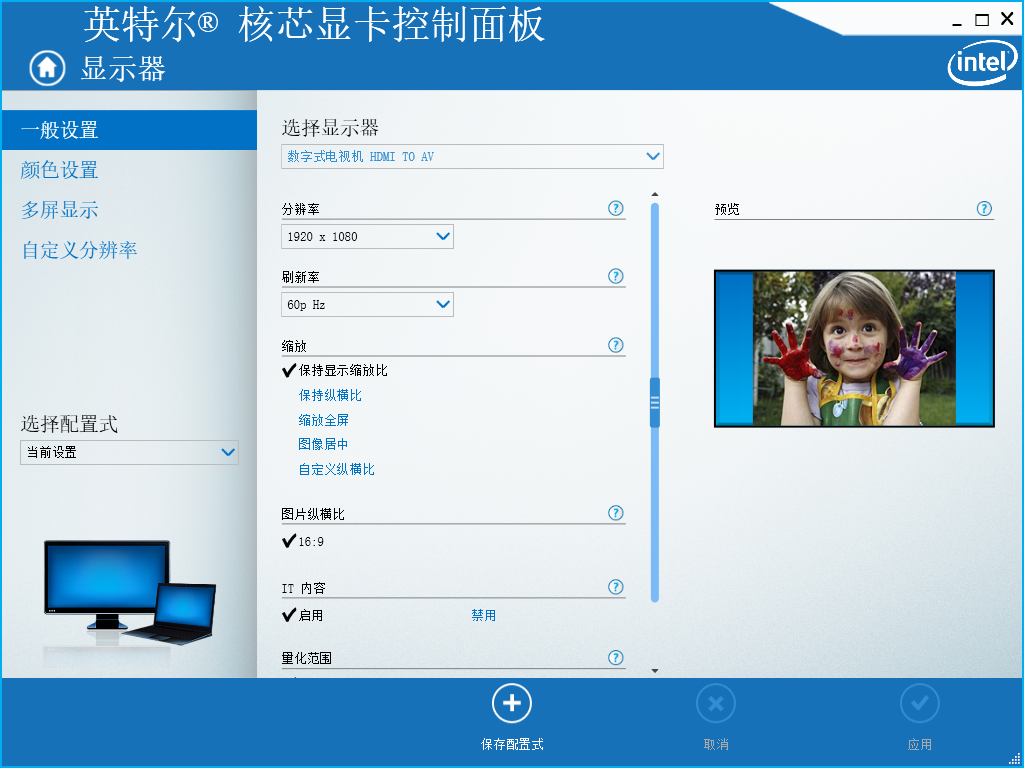 運(yùn)行程序,即可看到串口調(diào)試終端打印如下信息,然后在PC機(jī)的顯卡設(shè)置(或圖形屬性)中,按照下圖設(shè)置HDMI分辨率為1920x1080、刷新率為60pHz。