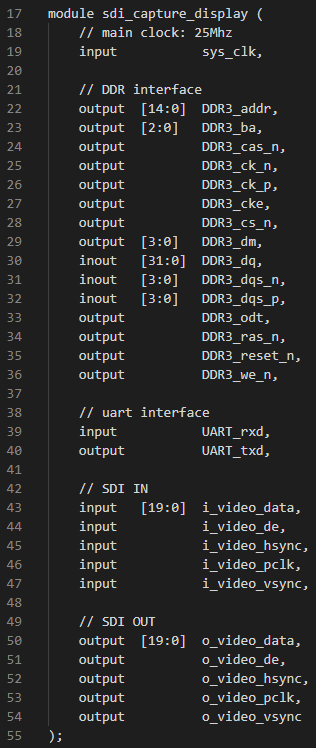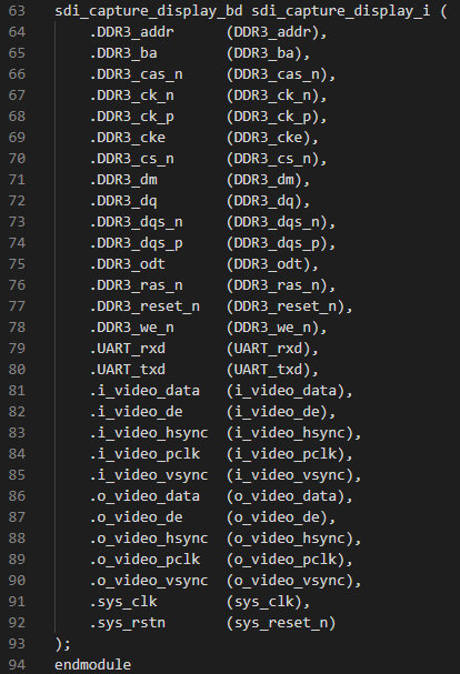 Vivado工程頂層文件為"hw\project\sdi_capture_display.srcs\sources_1\imports\hdl\sdi_capture_display.v",關(guān)鍵代碼說明如下。