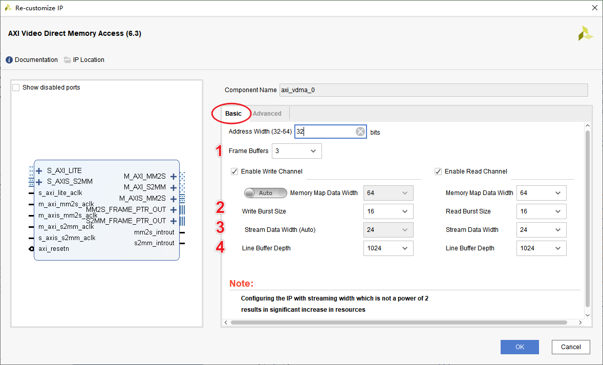 (4) 讀/寫通道的Line Buffer Depth均配置為1024。
