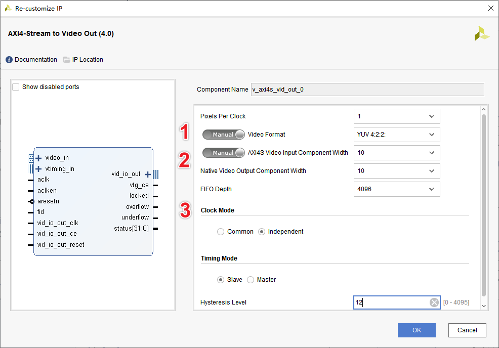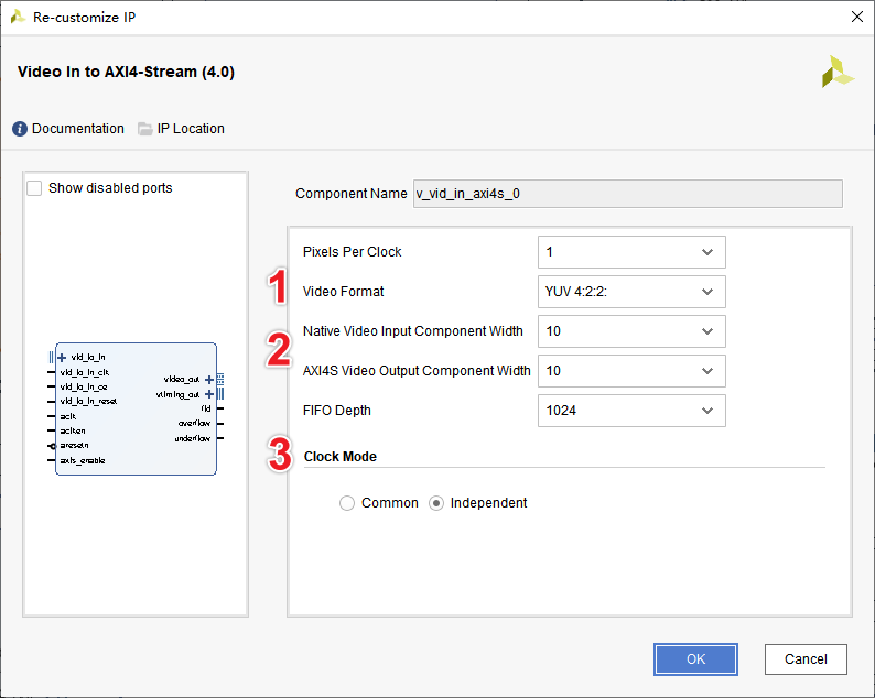 本案例使用Video In to AXI4-Stream IP核將并行視頻信號(hào)轉(zhuǎn)換為AXI4-Stream視頻流。