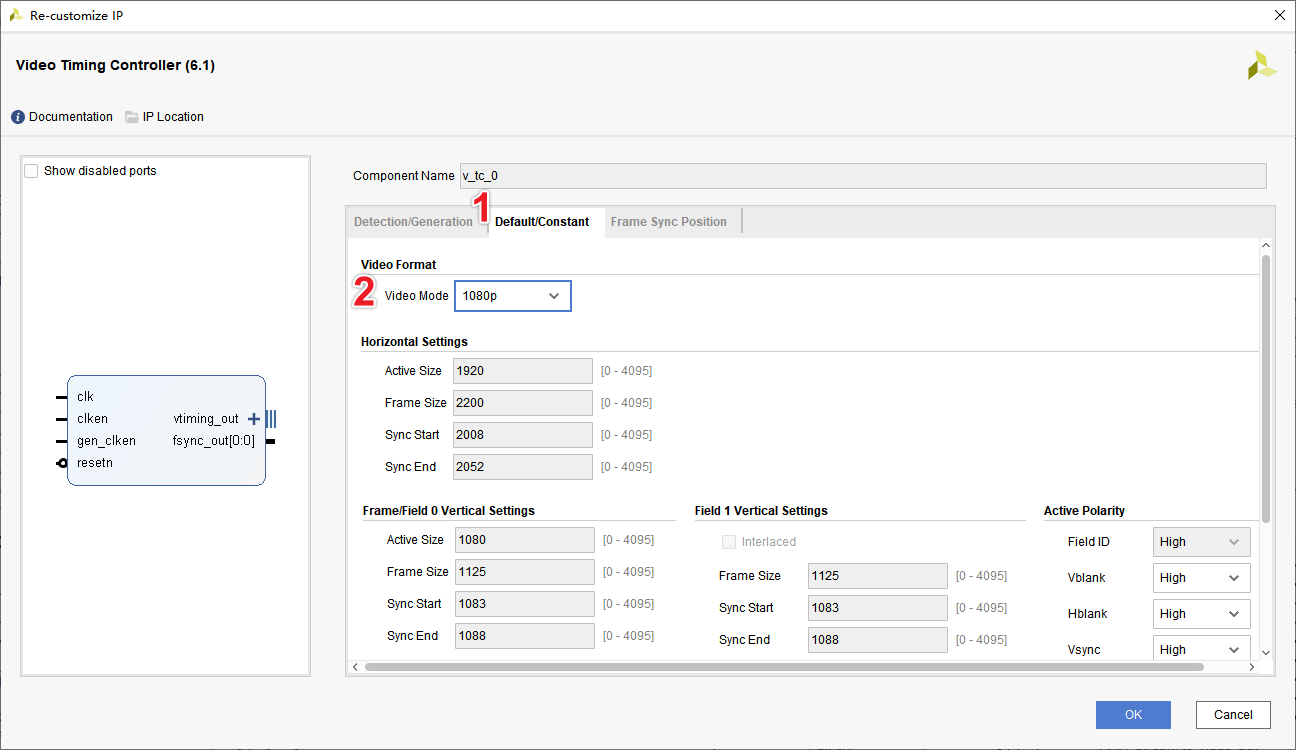 本案例使用VTC IP核產(chǎn)生用于視頻輸出的時(shí)序。
