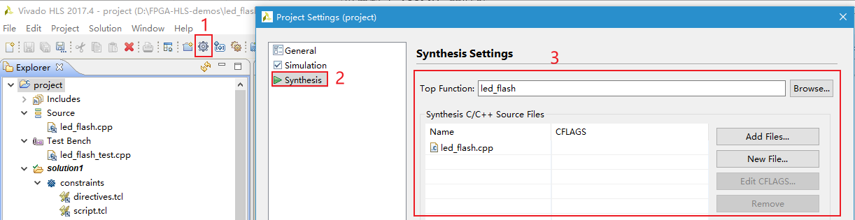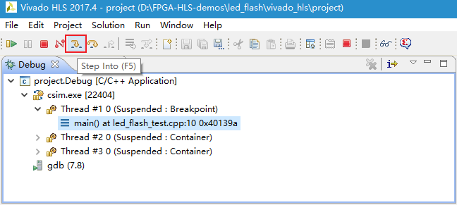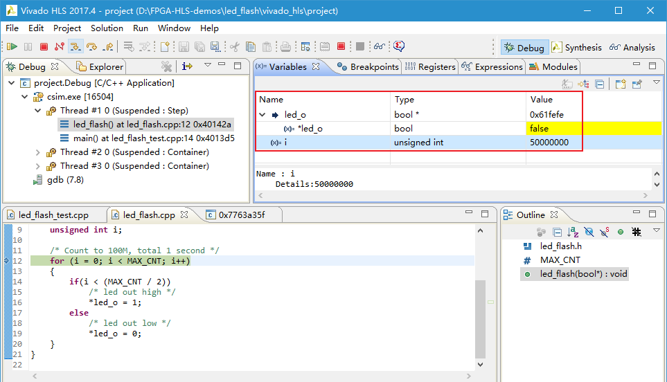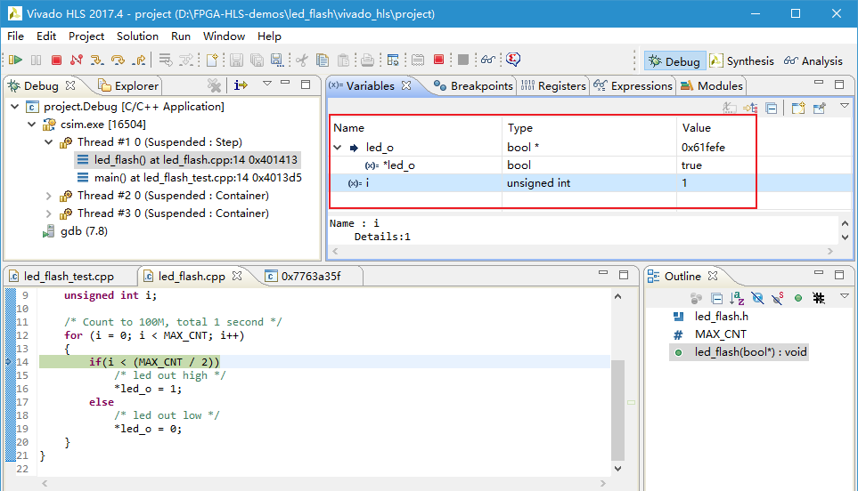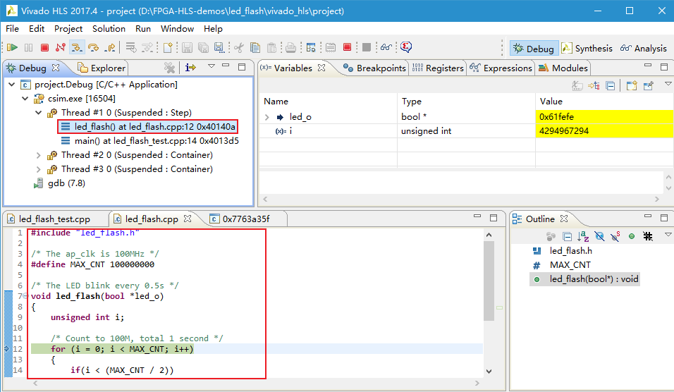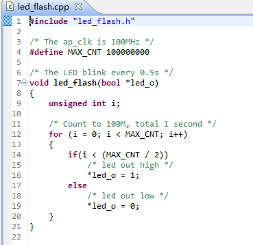 案例頂層函數(shù)為led_flash.cpp中的led_flash()。
