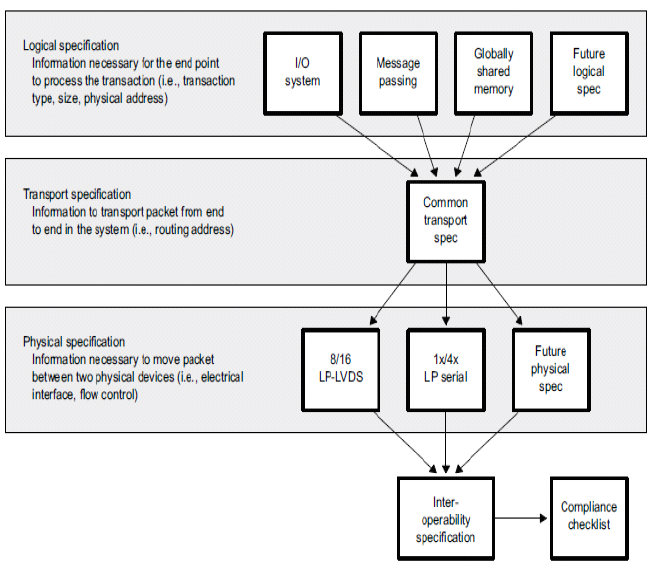 RapidIO體系結(jié)構(gòu)如下: