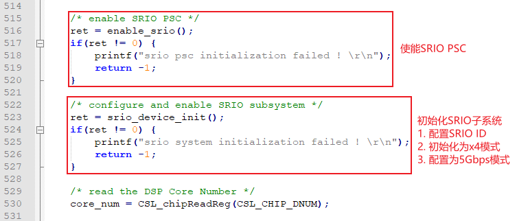 (2) 使能SRIO PSC,初始化SRIO子系統(tǒng),SRIO通信測試。