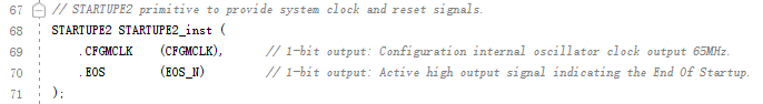(2) 使用STARTUPE2原語提供的EOS作為系統(tǒng)復(fù)位信號,CFGMCLK(65MHz)作為系統(tǒng)時鐘。