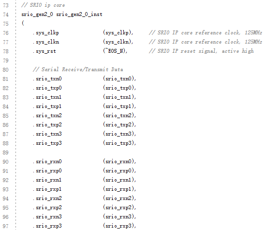 (3) 例化Serial RapidIO Gen2 IP核。