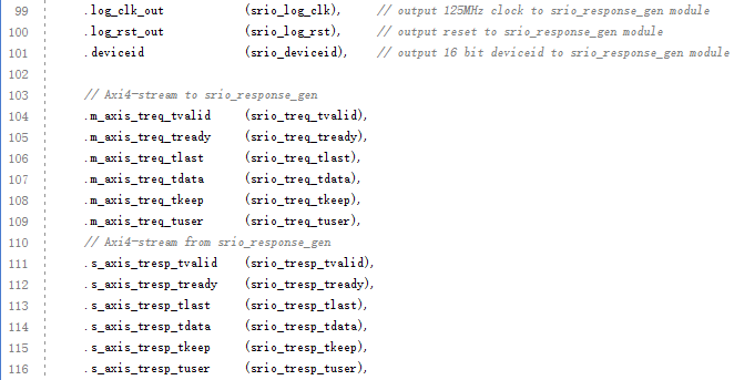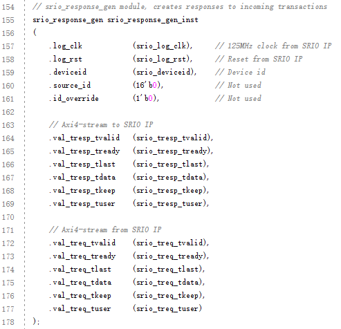 (4) 調(diào)用srio_response_gen模塊,其接口與Serial RapidIO Gen2 IP核連接。